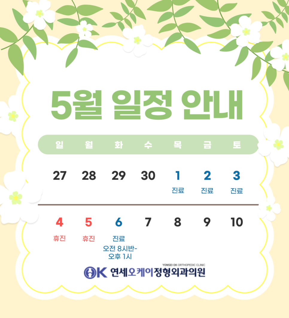 가정의 달! 5월 초 진료시간을 안내드립니다.