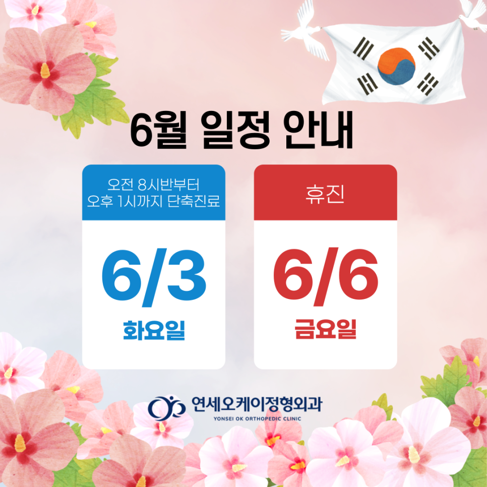 6월 현충일 진료 일정을 안내드립니다.