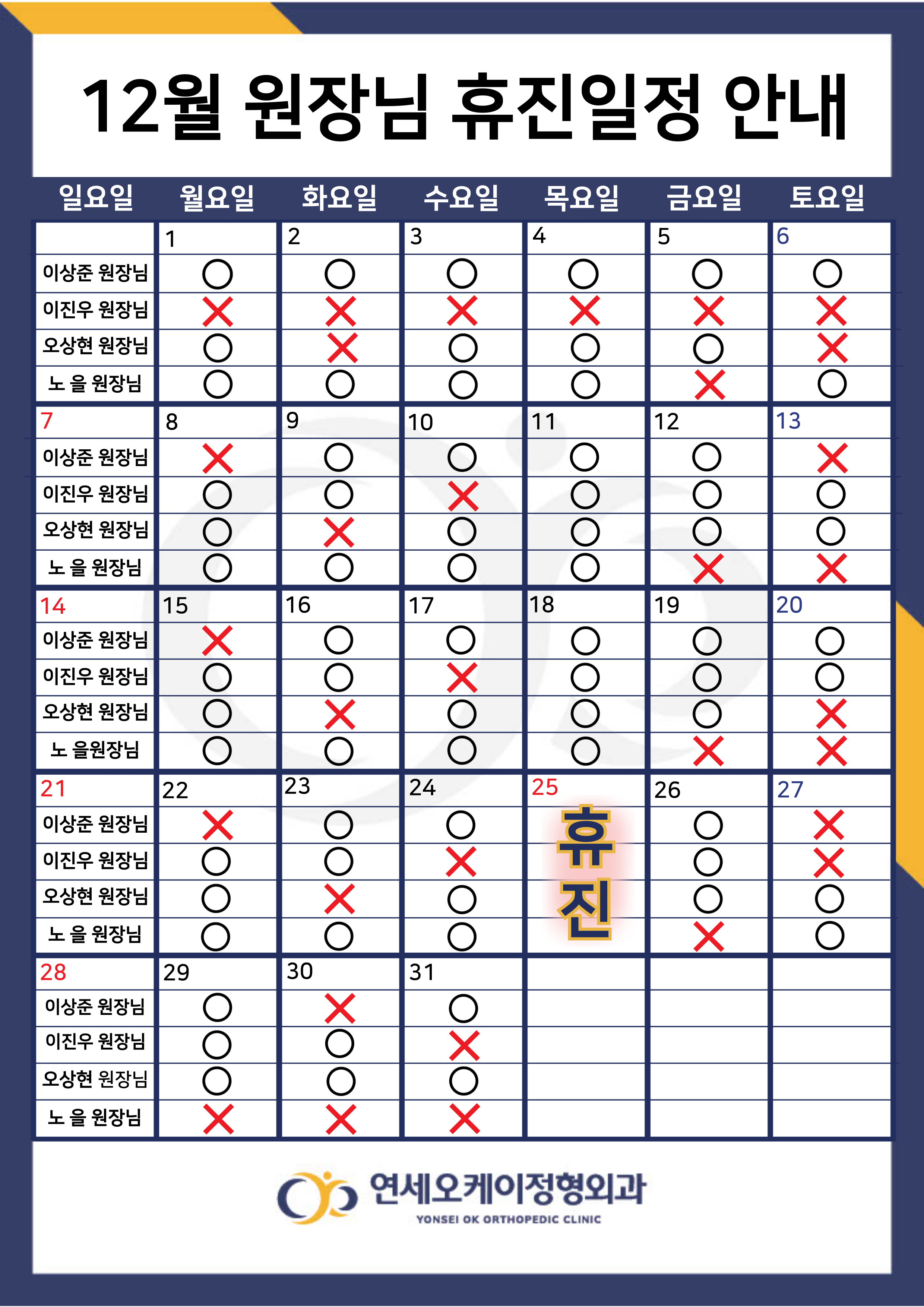 12월 원장님 휴진 일정 안내