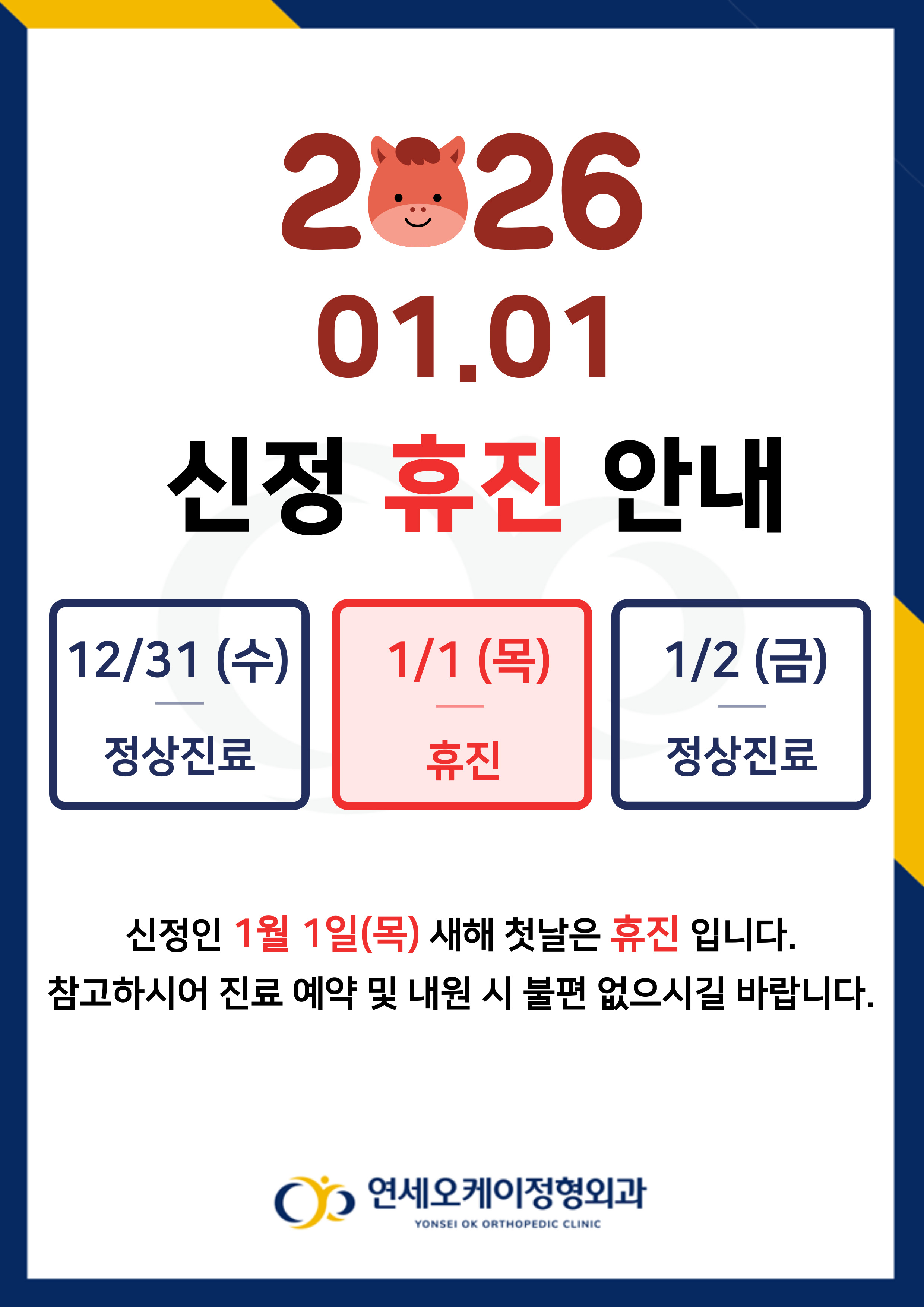 1월 1일(목) 신정, 새해 첫날은 휴진 입니다.